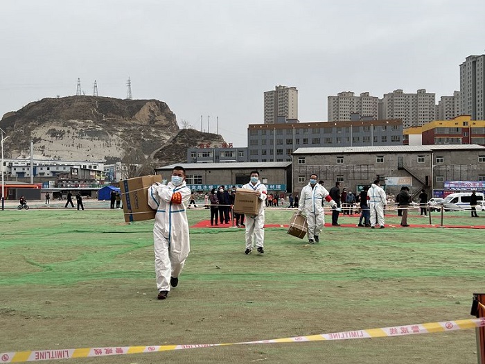 2022年,府谷縣紀檢監(jiān)察干部下沉高石崖社區(qū)核酸監(jiān)測點配合核酸檢測工作。
