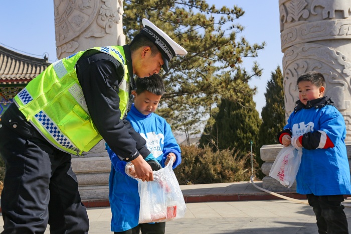 活動中,府谷縣公安局交警大隊民警和志愿者團(tuán)隊以改善神龍山景區(qū)環(huán)境為主題,一起對神龍山景區(qū)及其周邊區(qū)域的環(huán)境垃圾進(jìn)行了撿拾與清理,在此過程中,府谷縣公安局交警大隊民警也向小義工們講述了雷鋒短暫又精彩的一生,通過對雷鋒光榮事跡細(xì)致而又生動的講解,切實讓小義工們感受到雷鋒“螺絲釘精神”的力量,引導(dǎo)小義工們學(xué)習(xí)雷鋒艱苦奮斗、無私奉獻(xiàn)的精神,做到心中有愛,心中有責(zé)。經(jīng)過1個小時的辛勤努力,小義工們揮灑出的汗水讓神龍山景區(qū)換了“新顏”。最后,小義工們向志愿者以及民警們佩戴了他們親手制作的小紅花,致敬身邊最可愛的雷鋒精神榜樣;民警也為小義工們頒發(fā)了“學(xué)雷鋒榜樣少年”、“學(xué)雷鋒精神標(biāo)兵”的獎?wù)?。通過互動,讓雷鋒精神在新時代綻放更加璀璨的光芒。
