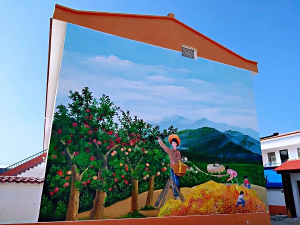 阿黨鎮(zhèn)葡萄寨村屬南溝門水庫搬遷村,漫步村莊,最吸引人的是鄉(xiāng)風(fēng)文明一條街。這條街上的主副巷道和房前屋后的圍墻都是一幅幅手繪畫和宣傳標(biāo)語,生動形象地將社會主義核心價值觀、愛護環(huán)境、移風(fēng)易俗、愛親敬老等呈現(xiàn)在村民面前,營造出“面面墻壁會說話,處處景觀都育人”的氛圍。“我們希望村民在平常生活中,或者干活過程中,要互相尊敬,互相禮讓……”第一書記裴大龍對指著文化墻上“知榮辱講禮儀”內(nèi)容說。