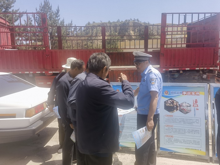 為進(jìn)一步做好農(nóng)村地區(qū)道路交通安全宣傳工作,切實(shí)提高廣大群眾的交通安全意識(shí)、法治意識(shí)、自我防護(hù)意識(shí),預(yù)防和減少道路交通事故的發(fā)生。5月22日,府谷縣交警新民中隊(duì)利用老高川鎮(zhèn)木匠窯則古會(huì)開展交通安全宣傳活動(dòng)。