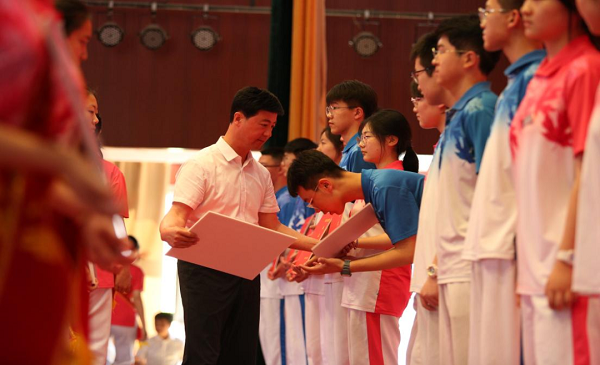 徐局長在典禮上代表學(xué)校向圓滿完成學(xué)業(yè)的學(xué)子們致以熱烈祝賀?!叭d勵志求學(xué),一朝鯤鵬展翅”!三年間,我們在高新一中不斷成長,這離不開校領(lǐng)導(dǎo)和老師們的悉心教導(dǎo)和精心培養(yǎng)。徐局長的致辭,聲聲囑托情真意切,句句箴言扣動心弦。
