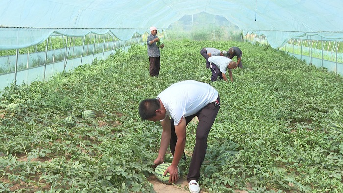在東溝村,記者看到一座座雙膜拱棚內(nèi)一片蔥蘢、翠綠的瓜蔓爬滿地壟,一個(gè)個(gè)渾圓飽滿的西瓜靜臥其間。村黨支部書記高永茂介紹,村里的20個(gè)蔬菜大棚全部承包給農(nóng)業(yè)公司經(jīng)營,僅蔬菜大棚每年可以給村里帶來8萬多元的收入。