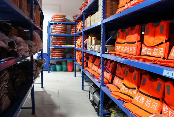 寧可備而不用、不能用而不備。在黃陵縣暖泉溝的防汛庫(kù)房?jī)?nèi),救生衣、應(yīng)急燈、醫(yī)藥箱、鐵鍬、電鋸、水泵等工具一應(yīng)俱全,分門別類碼放得整整齊齊,“常備不懈”的宣傳標(biāo)語(yǔ)格外醒目。