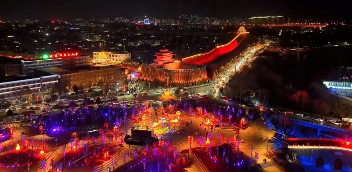 夜幕降臨、華燈初上,幸福燈光、煥亮古城。