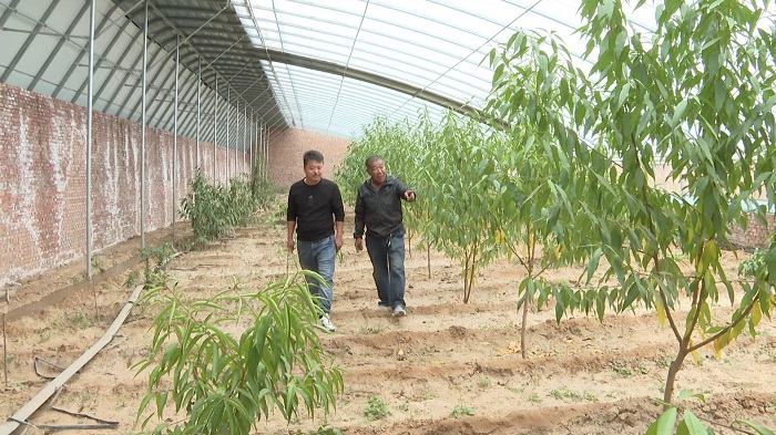 走進磧塄便民服務(wù)中心高堯峁村,連片的溫室大棚,綠意盎然,生機勃勃。今年高堯峁村投資160萬元建設(shè)了6座高標準溫室大棚,大棚的建設(shè)、管理及種植由村民自己負責。目前,溫室大棚內(nèi)種植的葡萄、海紅果、蘋果樹,長勢良好。大棚負責人郝玉璽說:“今年3月份我們種了4棚,一棚桃樹,一棚杏樹,一棚大海紅子樹,一棚葡萄樹,明年春天就可以掛果,農(nóng)業(yè)合作社就有了收益。”