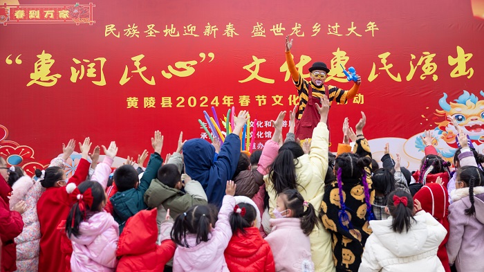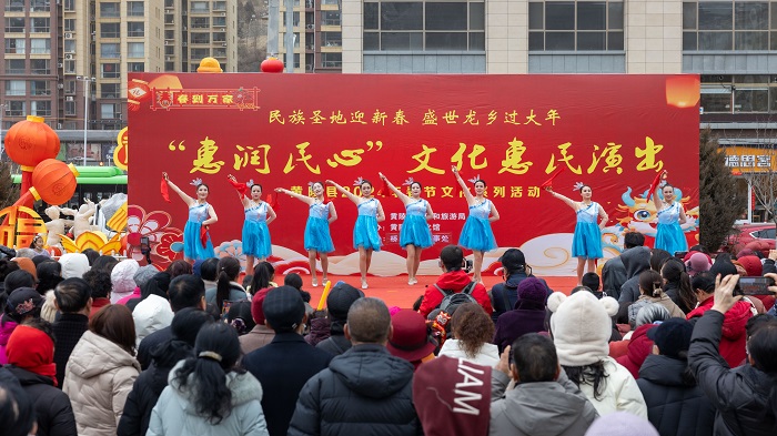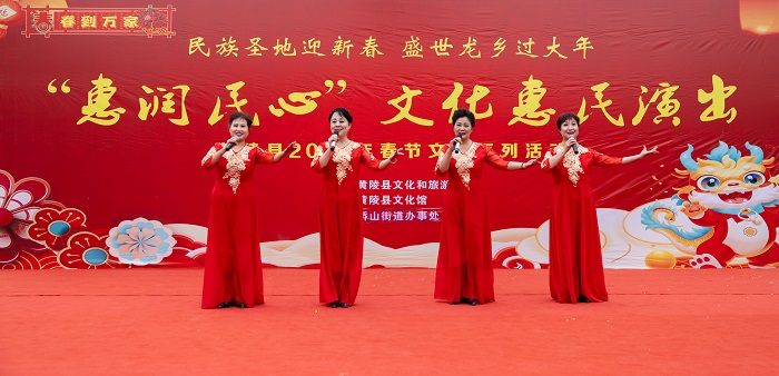 2月19日,由黃陵縣文化和旅游局主辦,黃陵縣文化館承辦的“惠潤民心”文化惠民演出在黃陵縣新區(qū)廣場拉開帷幕。喜慶的舞蹈、悠揚的歌聲、精彩紛呈的節(jié)目給市民們送上一份“文化”大禮包。