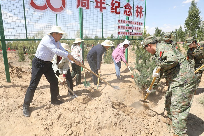 會(huì)前,與會(huì)人員在補(bǔ)浪河女子民兵治沙連勞動(dòng)實(shí)踐基地植樹(shù)點(diǎn)開(kāi)展植樹(shù)活動(dòng),并參觀了補(bǔ)浪河女子民兵治沙連連史館、景區(qū)及治沙連精神書(shū)畫(huà)作品展。(通訊員:周湘 李敏堯)