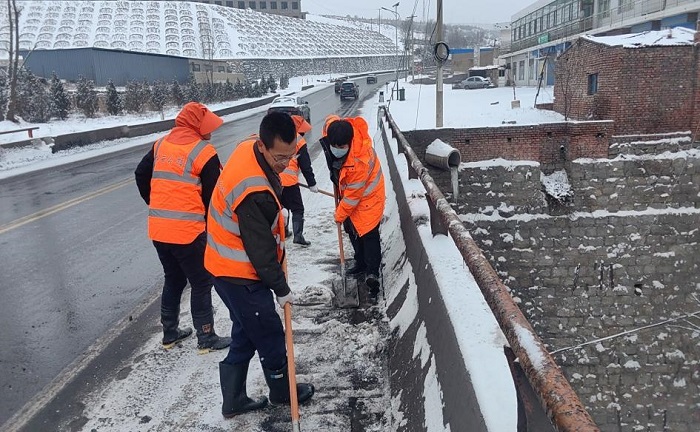 在凜冽的寒冬,氣溫達(dá)到零下20多攝氏度,寒風(fēng)肆虐,冰天雪地,即使凍裂了他們的雙手雙腳,但也不曾動(dòng)搖他們鋼鐵般的意志。你看,他們無(wú)所畏懼,以雙手為工具,抓起一把又一把的融雪劑,有力地拋灑向布滿積雪的公路,那拋灑出的融雪劑與積雪與大地融為一體,那消融的不僅是冰雪,也是凜冽的嚴(yán)冬!那抹亮麗的橘紅色,在皚皚白雪的映襯下光彩奪目、暖人心扉……這一群人就這樣,靜靜地守候,默默地付出,任歲月在那日復(fù)一日,年復(fù)一年的指尖上流走。
