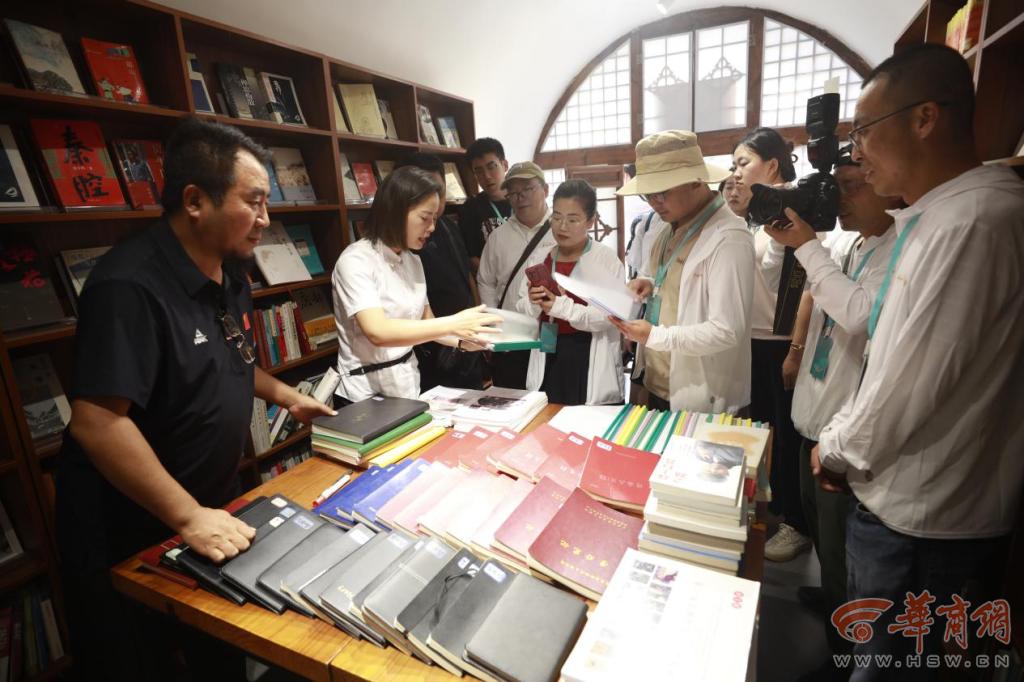 “為更好的學(xué)習(xí)柳青‘深入生活、扎根人民’的文學(xué)精神,傳承優(yōu)秀黃河文化,吳堡縣委、縣政府在寺溝村建設(shè)了柳青文化園。”吳堡縣柳青文化研究中心主任張永強向采訪團介紹,柳青文化園包括文學(xué)之門、柳青文學(xué)館、柳青故居、作家墻、簽名墻、柳青私塾、柳青書院、陜西現(xiàn)當(dāng)代作家群館、陳忠實館、賈平凹館、路遙館、陜西作家手稿書信館、陜西老報刊雜志館、榆林作家館、延安作家館等。文化園從全國各地?fù)尵刃允詹氐?675年到2023年共348年間陜西500多位文學(xué)家圖書作品14000余冊,珍貴手稿書信14816頁,文學(xué)作品改編成的電影電視劇實物資料300多件。先后有200多位著名作家為柳青文學(xué)館題詞贈書,表達(dá)對柳青先生的敬仰和緬懷。