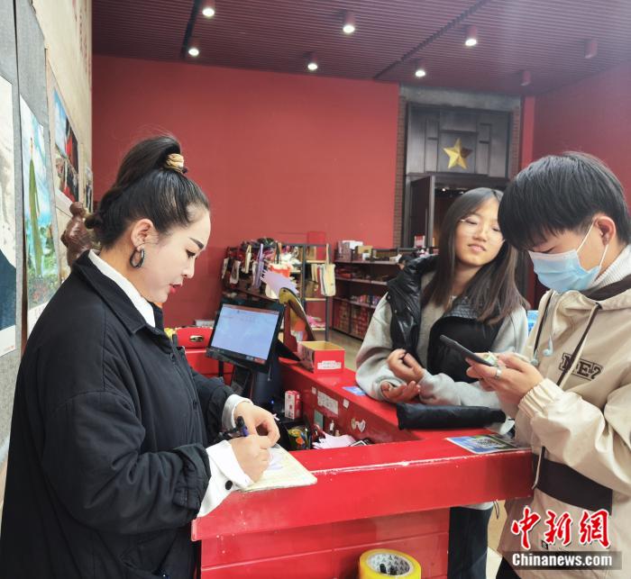 記者注意到,文創(chuàng)店內(nèi),許多年輕人正興奮地在蓋章打卡區(qū)留下自己的印記?!斑@些蓋章以延安十三年間的革命舊址為原型,如楊家?guī)X革命舊址、棗園舊址以及寶塔山等紅色地標(biāo),被巧妙地設(shè)計成印章形式。”蘇麗娜說:“每蓋一個章子,就能了解到背后的紅色故事,這種新穎的方式讓紅色文化更加生動有趣,也深受歡迎。”