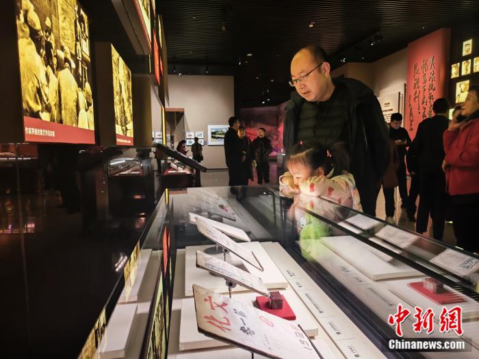 偌大展廳中,不少家長趁著周末帶孩子來感受紅色文化的熏陶。小朋友胡宇一塵對展覽中的衣服、干糧等物品印象深刻:“我感覺他們很辛苦,成天打仗,穿的衣服破破爛爛。我以后也想跟他們一樣,幫助我們的國家。”小一塵的媽媽則表示,希望女兒能通過這次參觀,了解歷史,珍惜現(xiàn)在的幸福生活。