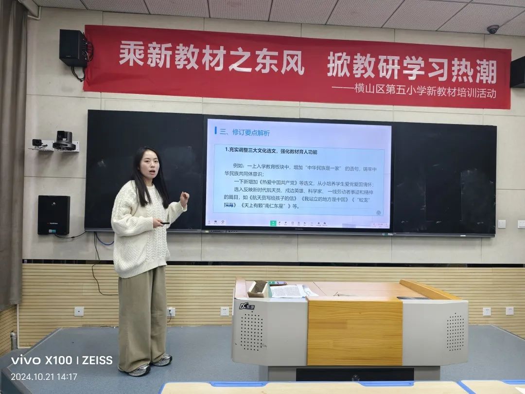 秋風(fēng)送爽,楓葉傳情,正宜研墨譜新篇。為全面貫徹執(zhí)行2024版新教材教學(xué)要求,幫助教師更深入地領(lǐng)會新教材內(nèi)涵,精準(zhǔn)把握新教材的實質(zhì)和主要變革,幫助教師提高認(rèn)識、轉(zhuǎn)變傳統(tǒng)教育觀念、明確新教材教學(xué)目標(biāo)、改變傳統(tǒng)教學(xué)方法,切實把新教材的教育理念和基本要求落實到實際課堂教學(xué)中。2024年10月21日至2024年10月24始,在學(xué)校教務(wù)處的精心組織安排下,各教研組相繼開展“聚焦新教材,賦能新成長”新教材解讀專題培訓(xùn)活動。