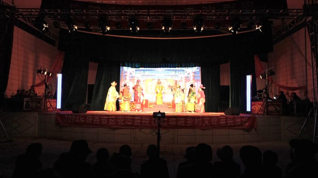 戲臺上,鑼鼓鏗鏘,縣劇團(tuán)的演員們粉墨登場,唱念做打盡顯風(fēng)流,臺下男女老少,或坐或站,目不轉(zhuǎn)睛地盯著臺上陶醉跟唱。沉浸在秦腔戲曲中的群眾隨著劇情的起伏,不時(shí)發(fā)出陣陣喝彩,現(xiàn)場氣氛熱情高漲。