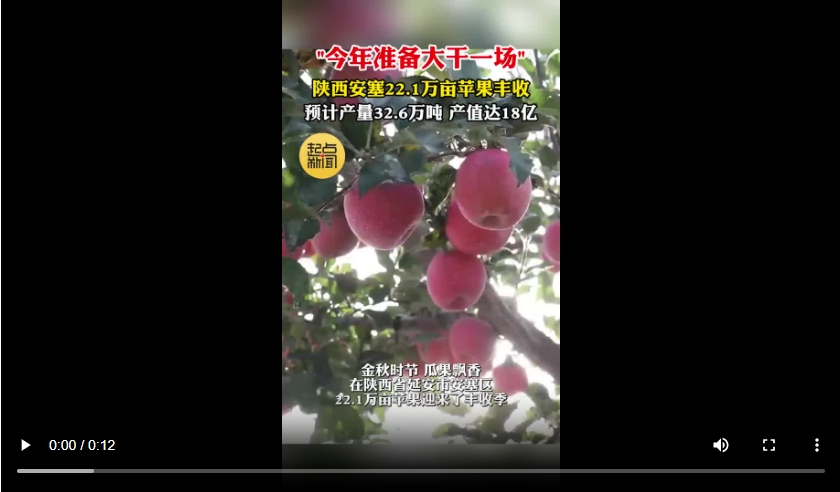 金秋時(shí)節(jié),瓜果飄香,在陜西省延安市安塞區(qū),22.1萬畝蘋果迎來了豐收季。果園里紅彤彤的蘋果掛滿枝頭,果農(nóng)們正忙碌地采摘、分揀、裝箱,處處洋溢著豐收的喜悅。