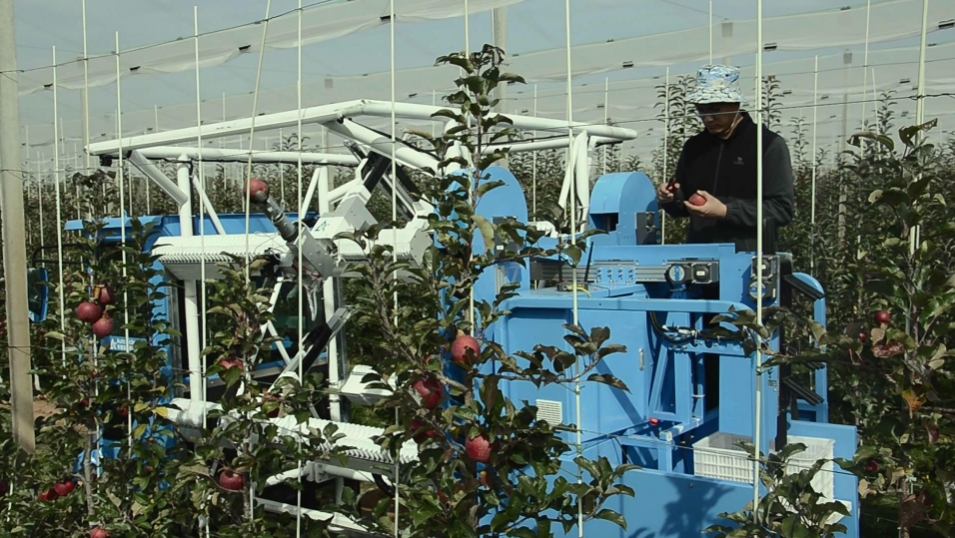 眼下正是陜西黃陵縣蘋果收獲的季節(jié),11月5日,智能蘋果采摘機器人“走進”黃陵縣景曦蘋果示范基地,進行全程機械化采摘蘋果工作。