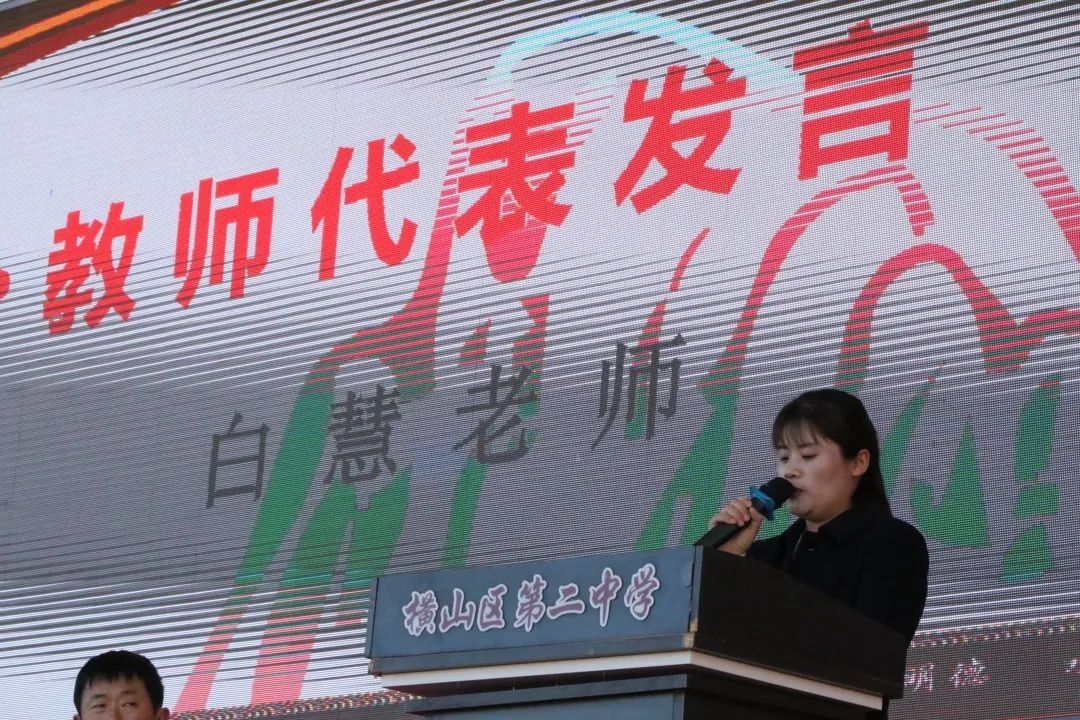 姚彥朵同學(xué)在發(fā)言中號(hào)召同學(xué)們?cè)谶@充滿荊棘的200里,牢記老師的教誨,銘記父母的殷切期盼,帶著內(nèi)心的夢(mèng)想出發(fā),不驕不躁、穩(wěn)扎穩(wěn)打,埋頭于書桌,奮楫于書海,以?shī)^斗為筆,書寫無(wú)悔青春,以行動(dòng)為墨,成就出彩青春!