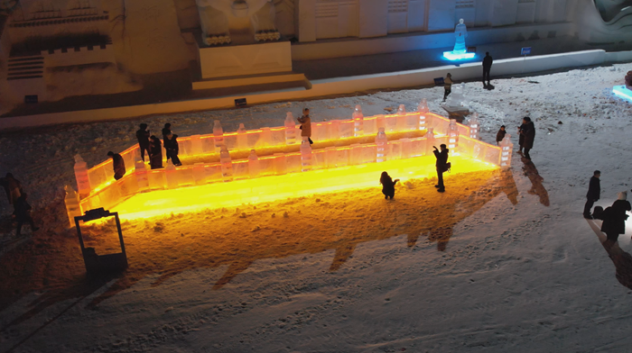 為了打造好冰雕、雪雕,榆陽區(qū)從哈爾濱、齊齊哈爾等地邀請了180余名冰雕師、造雪工人,不僅將榆林各縣市區(qū)的特色文化濃縮于冰雕之中,在晶瑩剔透的“冰立方”搭 建起了冰滑梯、冰屋、冰墻,還推出了“大漠冰雪舞臺”“摘冰糖葫蘆”“摩托拉獨角獸”等有趣好玩的互動項目,為各路游客帶來良好的暢玩體驗。
