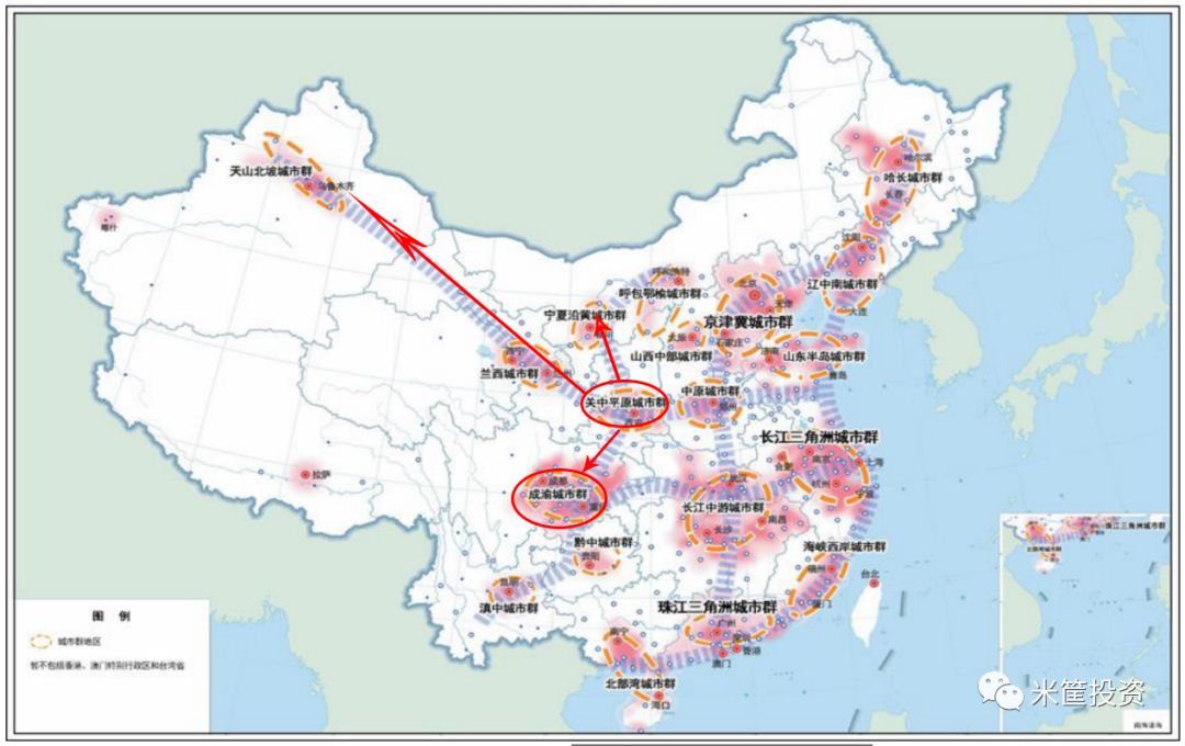 京津冀坐鎮(zhèn)華北,長(zhǎng)三角主導(dǎo)華東,珠三角輻射華南,中部及長(zhǎng)江中游支撐中部,成渝則覆蓋西南,哈長(zhǎng)城市群棲息東北,西北卻少了引領(lǐng)者,區(qū)域的不均衡必須填補(bǔ)這個(gè)空白。
