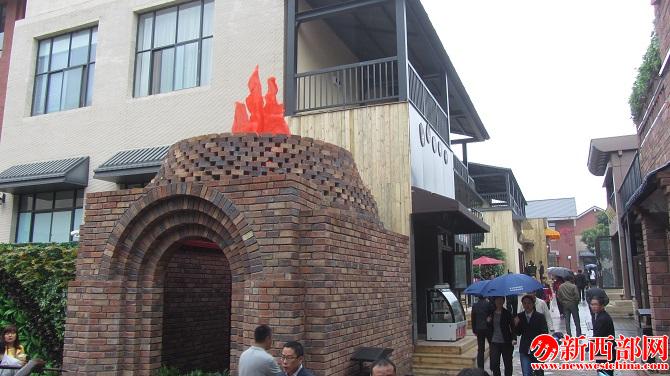 “十一”當(dāng)天,照金文化創(chuàng)意街區(qū)熱鬧非凡。熊熊燃燒的陳爐窯火前站滿了好奇的孩子,筆勢剛健的柳體字創(chuàng)意造型前拍照留影的人們絡(luò)繹不絕,而造型別致的建筑外觀更吸引大批游人駐足欣賞。