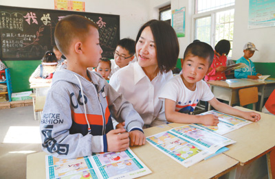 6月18日,陜西銅川照金北梁紅軍小學(xué)舉行“情暖山區(qū)”關(guān)愛春苗行動(dòng)。據(jù)了解,8年來,該行動(dòng)先后19次走進(jìn)當(dāng)?shù)匦W(xué)開展愛心幫扶、捐資捐物,傳遞愛心。圖為炳勤照金勞模工作室的工作人員為孩子們送去學(xué)習(xí)用品,并一起讀書、互動(dòng)、做游戲。
