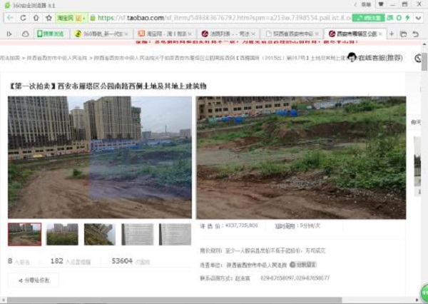 據(jù)西安中院透露,自2017年4月25日發(fā)布拍賣公告以來,收到幾十家企業(yè)的來人來電咨詢,5萬余人次的網(wǎng)絡(luò)圍觀,截至5月31日18時(shí)共有8家企業(yè)向淘寶網(wǎng)司法拍賣平臺(tái)交納了6800萬元的保證金,取得了競買資格,其中一家企業(yè)委托個(gè)人報(bào)名取得競買資格。