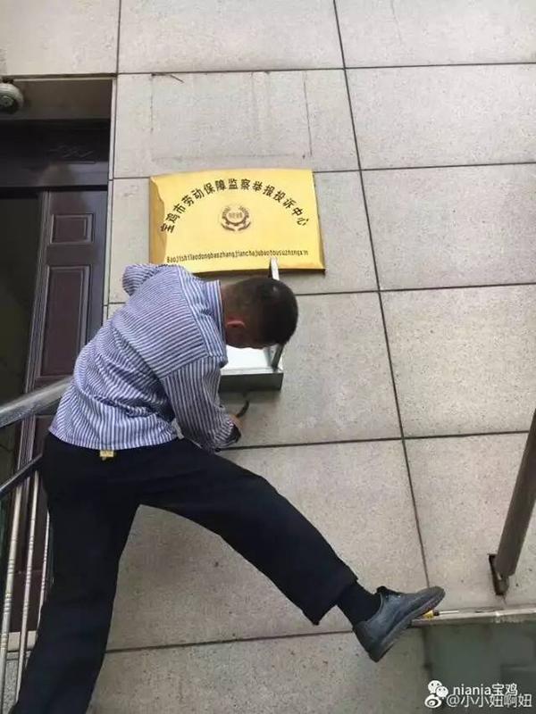 4月25日下午,寶雞市勞動保障監(jiān)察舉報投訴中心將這個“高高在上”的投訴箱取下,釘在旁邊距地面1米多高、沒有監(jiān)控的位置上。