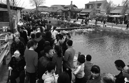 4月3日,涇陽茯茶鎮(zhèn)游人如織。 記者代澤均攝