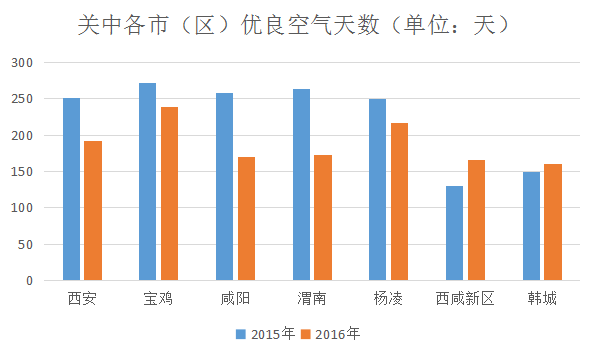 2016年關中多地優(yōu)良空氣天數下降 (數據來源于陜西省環(huán)保廳)