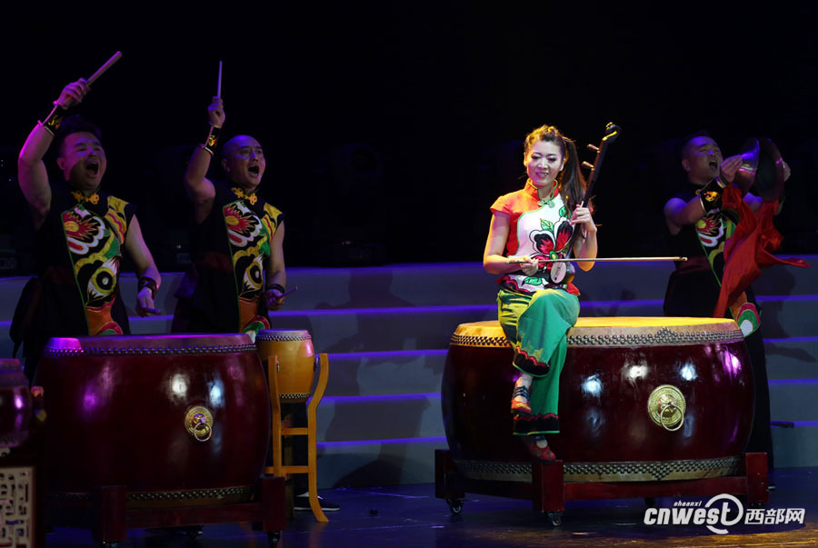 音樂類節(jié)目板胡與鼓《絲路歡歌》以嶄新的構(gòu)思將板胡與鼓等打擊樂巧妙地結(jié)合,反映了古老的絲綢之路從長安起步,音樂跟鼓聲隨著絲路走向遠方,預(yù)示著新絲路又一次從古絲路起點出發(fā)。作品給人一種嶄新美麗的陜西走向世界的氣魄以及新絲路歡樂騰飛、發(fā)展的新景象。