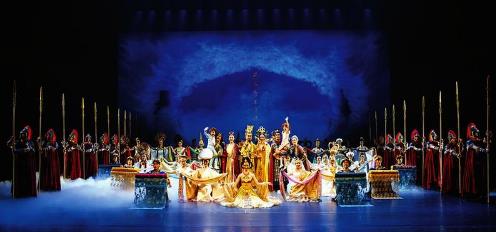 深厚的歷史文化底蘊是西安寶貴的資源稟賦,也是文藝創(chuàng)作永不枯竭的源泉。近年來,西安市充分發(fā)掘利用歷史文化中的深刻內(nèi)涵,著眼時代發(fā)展重大主題,貫徹“一帶一路”國家戰(zhàn)略,圍繞“民心相通”文化先行,由曲江新區(qū)管委會、西安演藝集團歌舞劇院歷時3年傾力打造了絲綢之路主題的原創(chuàng)舞劇《傳絲公主》。該劇以唐玄奘《大唐西域記·瞿薩但那·麻射僧伽藍及蠶種的傳入》和現(xiàn)存于倫敦大英博物館的唐代木版畫為史料依據(jù),以唐代公主李寧兒與拂菻國王子小波多力美麗的愛情故事為主線,講述了唐代公主將桑蠶種帶入拂菻國,用絲綢去溫暖、美麗、福祉世界的中國故事。全劇通過意象靈動的舞蹈語言,帶領(lǐng)觀眾身臨其境般踏上西行傳絲的旅程,凸顯了中國絲綢造福絲綢之路沿線各國人民的宏大文化主題,昭示了“無盛唐,不傳絲”的中華大國情懷。該劇從唐詩、唐畫、唐俑等元素中生發(fā)出《胡姬舞》《簪花舞》《搗練舞》《西涼武舞》,音樂上吸收唐代音樂形態(tài),并與西安鼓樂、秦腔音樂、陜西民間音樂和西域音樂元素交融互補,實現(xiàn)了傳統(tǒng)與現(xiàn)代音樂思維的碰撞。其宏闊的文化背景、感人的絲路故事、鮮明的藝術(shù)風格和精良的制作水準,成為當下絲路題材文藝作品的上乘之作,并先后入選國家藝術(shù)基金資助劇目、陜西省重大文化精品資助項目和西安市宣傳文化發(fā)展專項資金重點扶持項目。
