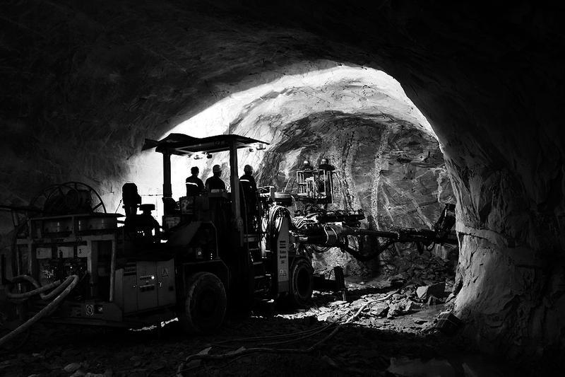 隧洞內(nèi)工人穿防彈衣施工