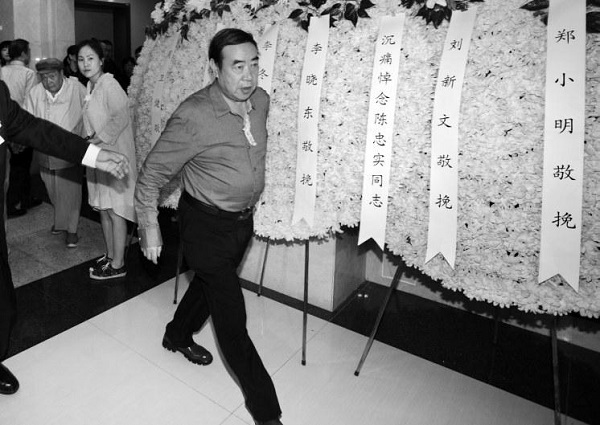 曾在話劇《白鹿原》中飾演白嘉軒和鹿子霖的濮存昕、郭達(dá)及編劇孟冰都來到現(xiàn)場(chǎng)為陳老送行。濮存昕在與眾人一起鞠躬致意后,離開陳老遺體前又雙手合十,單獨(dú)深鞠一躬。他說:“陳老師走了,頭下果然枕著他不朽的著作,我們馬上做計(jì)劃,明年再演白鹿原?!?