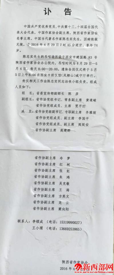 這兩天,許多知名藝術(shù)家聞?dòng)嵹s到省作協(xié)前來(lái)吊唁陳忠實(shí)先生。