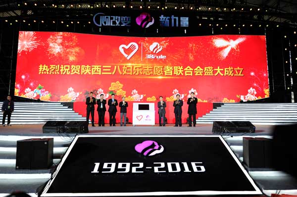 2016年3月26日,陜西省首家民營企業(yè)志愿者聯(lián)合會——陜西三八婦樂志愿者聯(lián)合會在曲江會展中心正式成立。團中央志工部綜合協(xié)調(diào)處處長黃英鋒、團省委副書記單舒平等相關(guān)單位領(lǐng)導(dǎo),全國各地的14000多名企業(yè)員工代表參加了成立大會,正式宣誓成為志愿者。