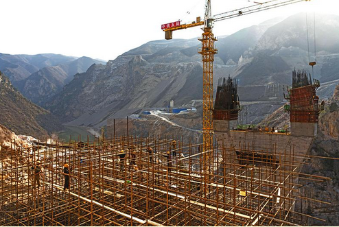 在由中鐵5局、中鐵17局承建的1號隧道和壩址勘探試驗(yàn)洞內(nèi),雖然地面泥濘,施工條件艱苦,但燈火通明,機(jī)械轟鳴,施工人員頭戴安全帽,精神飽滿地操作機(jī)械拌合混凝土、運(yùn)送石料,雖然緊張而忙碌,但秩序井然。