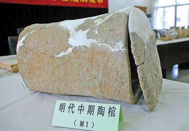 “在陶棺內(nèi)發(fā)現(xiàn)了明確紀(jì)年,一件棺蓋有墨書題記為金大定五年?!备黄娇h文物旅游局王保東說,陶棺的形制、大小基本相同,說明這批陶棺均為金代遺物。