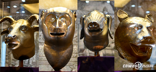 圓明園十二生肖獸首中的四枚獸首“牛首、虎首、猴首、豬首”,正式亮相渭南博物館