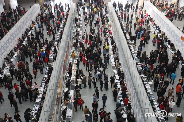 西安市中心會(huì)場(chǎng)到會(huì)參加招聘的用工單位就有350家,提供就業(yè)崗位8000個(gè)。