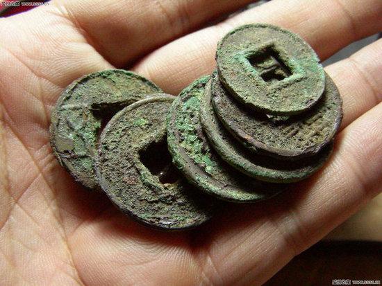 陜西興平市一村民在整理莊基地準備蓋新房時,在院中挖出一個錢窖,里面有古錢幣459公斤,經(jīng)文物主管部門人員初步確認,錢幣為王莽時期貨幣。