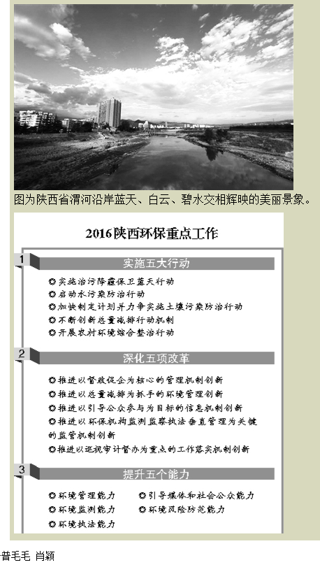 “讓人民群眾真切感受到環(huán)境改善的實際成效,不斷提升幸福感。”在2016年全省環(huán)保工作會議上,王成文這樣承諾。2016年,陜西省將深入推進環(huán)保五大行動,持續(xù)改善環(huán)境質量。