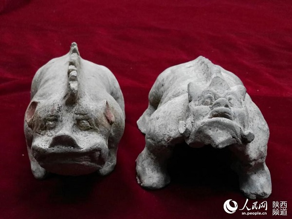 墓室分為前室和后室,前室東、西兩壁繪有彩色壁畫,由于垮塌嚴重,僅頂部星象圖較為清楚。后室由于流水沖擾,僅發(fā)現(xiàn)兩具人骨,根據(jù)殘留的大量棺灰判斷葬應為木棺。隨葬品主要分布于前室,共160多件(組),主要有陶鎮(zhèn)墓獸、武士俑、各類陶俑及陶馬、陶車、陶井等。