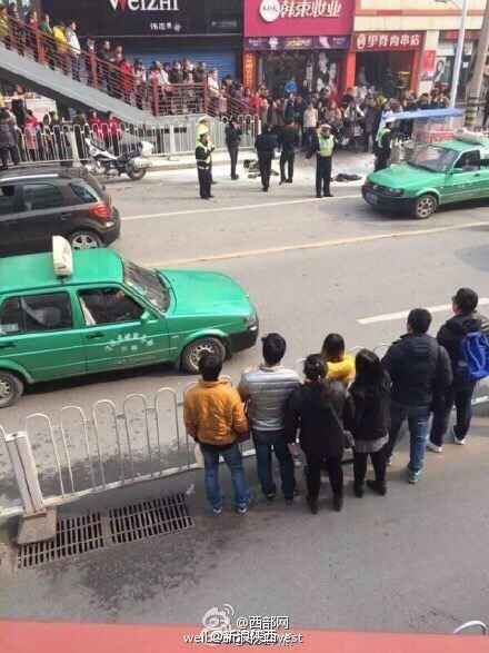 11月29日,咸陽市發(fā)生一起三輪車主違章被攔點火自殘事件。(圖片:微博網(wǎng)友“9527熊”攝)