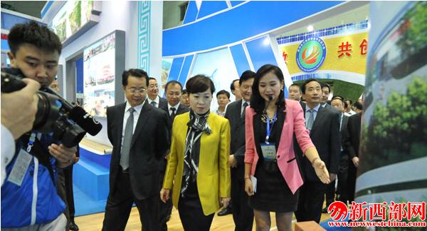 參加開幕式的領(lǐng)導(dǎo)參觀展區(qū)