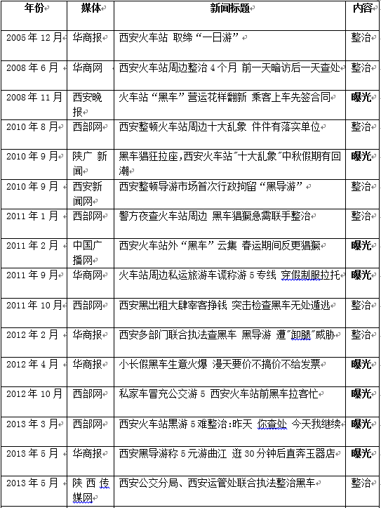 歷年報(bào)道西安“黑車”、“黑導(dǎo)”一覽表