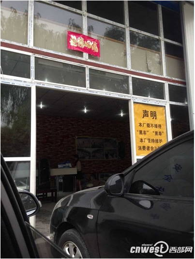 雖然“禁黑”聲明貼在大門上,違規(guī)營(yíng)運(yùn)的車輛卻在門口停了兩排。