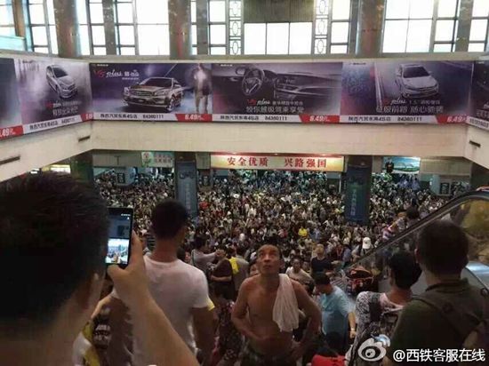 目前西安車站候車大廳滯留的旅客已經(jīng)遠(yuǎn)遠(yuǎn)超出負(fù)荷,為了保證旅客們的安全,建議有出行需要的旅客盡快辦理退票手續(xù),選擇其他方式出行,避免耽誤行程。