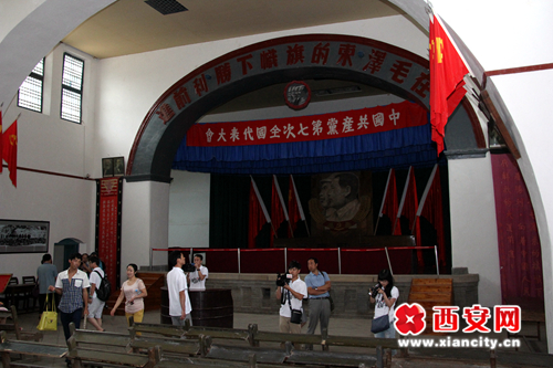 隨后,經(jīng)過幾十公里的路程“青年志愛國情”網(wǎng)絡(luò)媒體團(tuán)來到今天的第二站——楊家?guī)X革命舊址,了解革命先輩,如何在艱苦環(huán)境下為中國革命事業(yè)作出貢獻(xiàn)。楊家?guī)X是中共中央駐地舊址,在這里中共中央繼續(xù)指揮抗日戰(zhàn)爭敵后戰(zhàn)場并領(lǐng)導(dǎo)了解放戰(zhàn)爭,領(lǐng)導(dǎo)了大生產(chǎn)運(yùn)動和整風(fēng)運(yùn)動,召開了黨的“七大”和延安文藝座談會。在這里,延安日報(bào)的副主編、延安大學(xué)客座教授楊葆銘先生給大伙上了一堂生動形象的現(xiàn)場課。講述了革命戰(zhàn)爭時(shí)期新聞工作者艱苦工作的事跡,勉勵(lì)大家要繼承他們的優(yōu)秀品質(zhì),為工作盡職盡責(zé)。