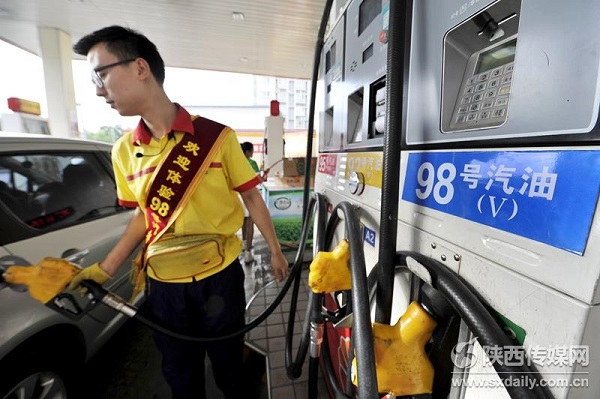 6月8日,西安環(huán)城東路中石油加油站,工作人員正在給車主加油。當(dāng)日,98號(hào)汽油首次亮相西安、寶雞、咸陽(yáng)三地11個(gè)中石油加油站。中石油西安銷售分公司勞動(dòng)南路、明德門、東三環(huán)、草灘路、高新、環(huán)東等六座加油站開(kāi)始銷售98號(hào)汽油。目前銷售98號(hào)汽油的城市有北京、上海、廣州等城市,出現(xiàn)在我省還是第一次。