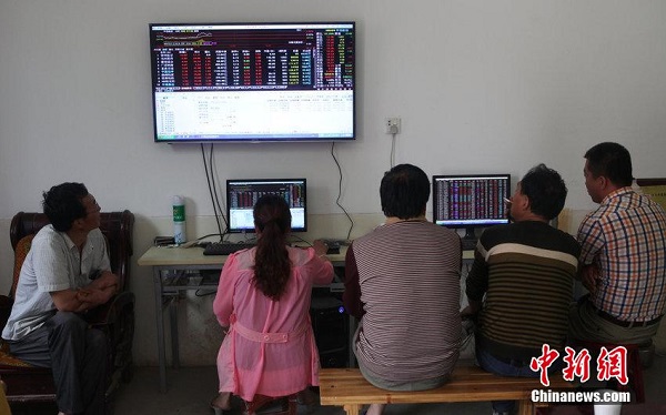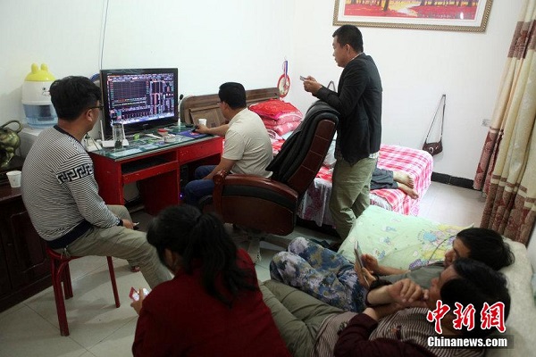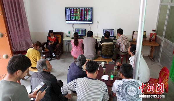 2015年6月1日消息,陜西興平一農(nóng)村百余村民除種田勞作之外,每天都在村支書(shū)的客廳里關(guān)注著股市的漲幅,炒股成了這些農(nóng)民的第二職業(yè)。張喆 攝