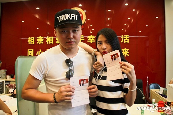 這對新人男孩叫楊若平26歲,女孩叫惠晨25歲,兩人相識已經快9年了,今天,他們拿到了自己的結婚證。